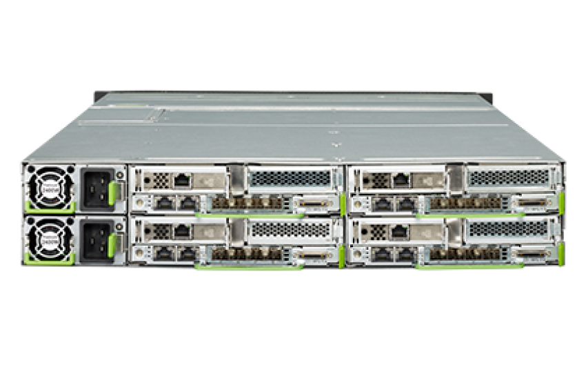 • Front bays Up to 24x 2.5-inch storage drives (usability depending on the server node)